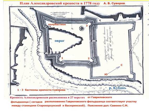 Тогда, в начале весны 1778 года, строительный отряд во главе с А. В. Суворовым остановился лагерем на возвышенности, нависшей над широкой лощиной, плавно спускавшейся к берегу Кубани. Это место подходило под строительство очередного укрепления: дрова в лесу, выросшем в лощине, вода в реке, в степи подножный корм для лошадей и порционного скота… Да и сама местность была здоровой.
