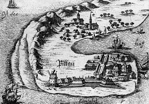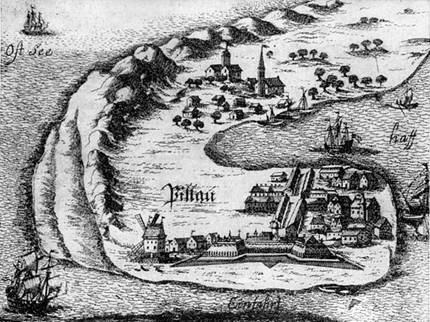 Первое упоминание о прусской деревне, расположенной на северной окраине современного города Балтийска, относится к 1258 году. В 1363 и 1430 годах упоминается поселение Пиль или Пиле, название которого происходит от прусского слова "пилз", в переводе означающего "крепость, крепостной вал".